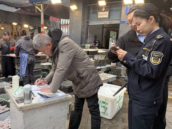 源头可溯,质量可控。 执法人员严格查验水产品的“一品一码”追溯信息、进货票据及合格证明文件,对进口产品重点核查报关单、检验检疫证明。市场管理方同步强化主体责任,将每日水产品抽检批次从平时的270多批提升至300批以上,严防不合格产品流入市场。春节期间,部分商户将照常营业,市场供应充足,预计日交易量将突破700吨。